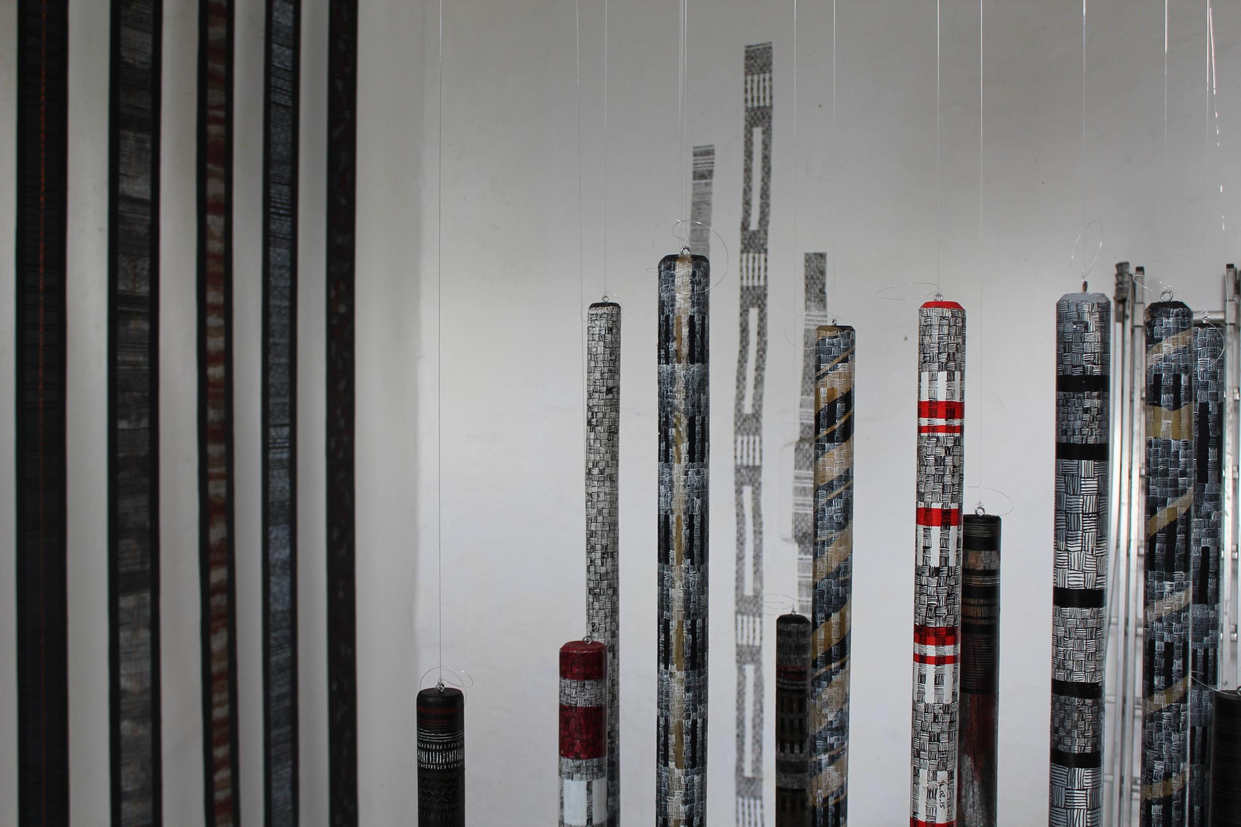 5 bâtons de traits, exposition Saint Jean le Thomas, 2017