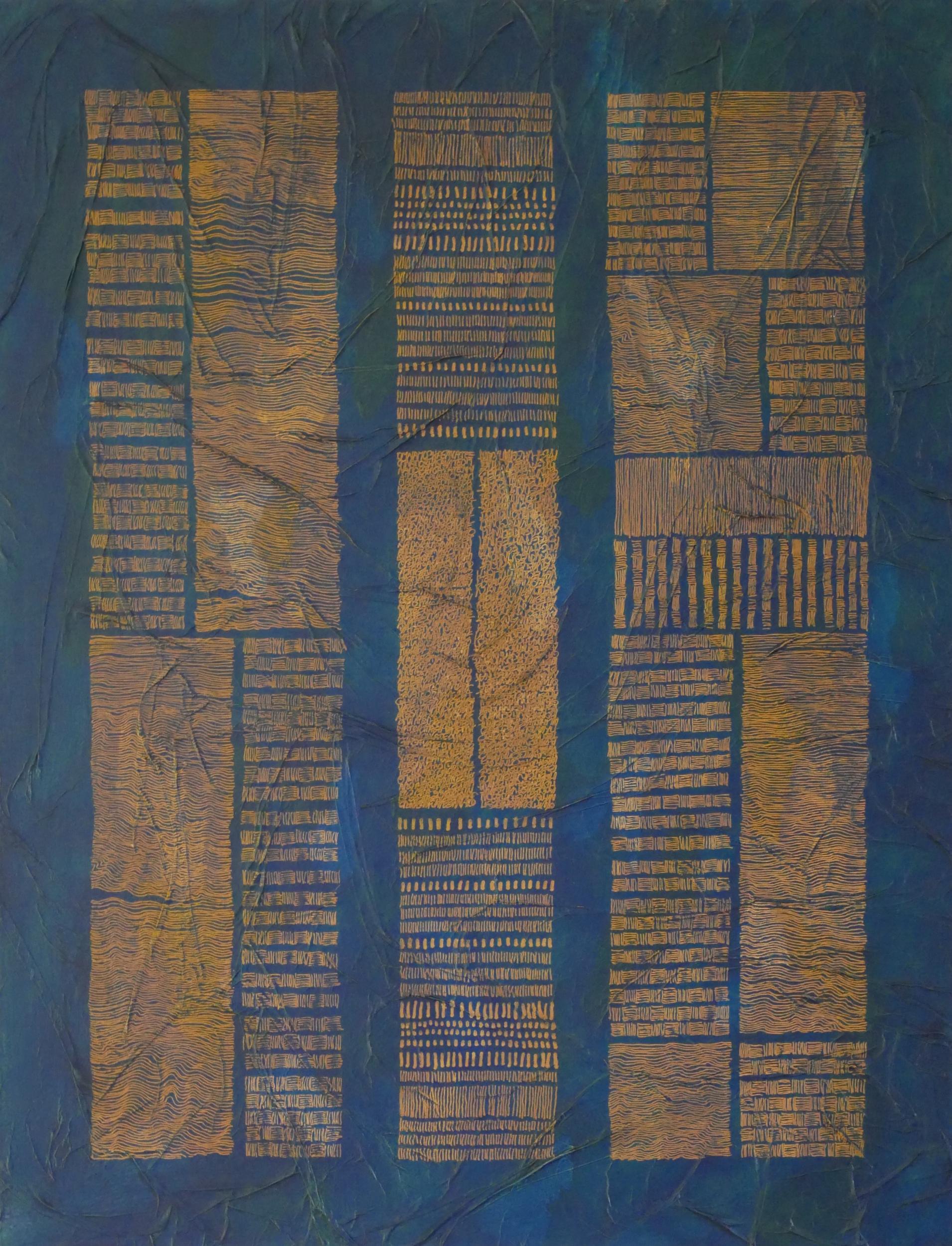 Peinture, gravure, broderie et collage papier sur toile